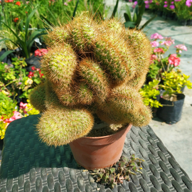 El Cleistocactus Winteri Cristata es un cactus de pequeñas espinas doradas y de crecimiento rápido. Es un cactus con flores, que son de un color rosa intenso. Necesita riegos abundantes en verano y menos frecuentes en invierno.